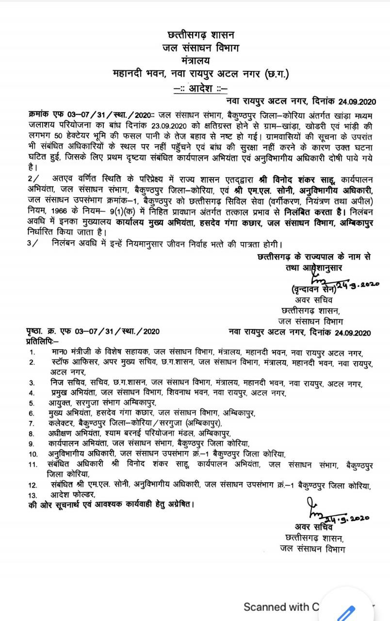 खाडा बांध टूटने मामले में कार्यपालन अभियंता व एसडीओ निबटे