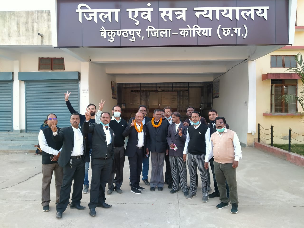कोरिया जिले के जिला मुख्यालय बैकुण्ठपुर में मंगलवार को हुए अधिवक्ता संघ के चुनाव में अधिवक्ता संघ के अध्यक्ष के तौर पर भरत लाल कश्यप एवं सचिव के तौर पर ध्रुव कश्यप चुने गए। मिली ानकारी के अनुसार सपन्न हुए चनाव में कुल 131 मतों में से 116 वोट पड़े । जिसमें से अध्यक्ष के लिए भरत लाल कश्यप को 62 तो दूसरे स्थान पर अध्यक्ष का चुनाव लड़ रहे हैं बृजेंद्र साहू को 31 एवं बिहारी लाल को 25 मत मिले । वहीं पर सचिव के तौर पर जिन तीन उम्मीदवारों में अपनी उम्मीदवारी की थी उसमें से विजेता ध्रुव कश्यप को 66 मत मिले तो दूसरे स्थान पर दिनेश साहू को 37 एवं अरविंद सिंह को 15 मत प्राप्त हुए। इस दौरान ध्रुप कश्यप ने कहा कि अधिवक्ता संघ के पदाधिकारी के तौर पर निर्वाचित होने पर मैं गौरवान्वित महसूस कर रहा हूं । इस दौरान उन्होंने साफ कहा कि अधिवक्ता अधिवक्ताओं के बेहतरी के लिए संघ की ओर से सुझाए गये मुद्दों को उचित फोरम पर जोर शोर से रखा जाएगा व अधिवक्ताओं की बेहतरी के लिए कार्य किया जायेगा।