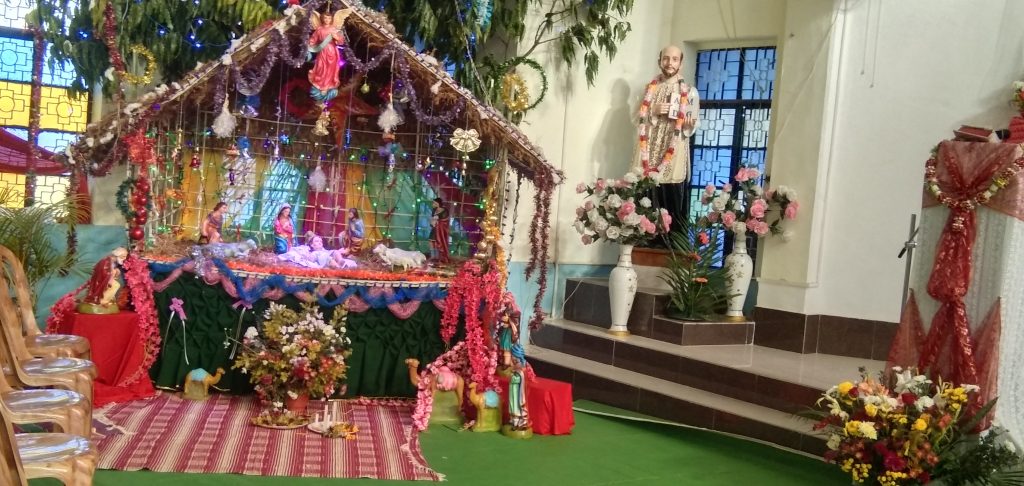 क्रिसमस ष्षुक्रवार की दरमियानी रात धूमधाम से उत्साह के साथ मनाया गया। शाम ढलते ही सभी पारीसों के माध्यम पास के चर्चों में विशेष रोशनी की गई थी, जहां विशेष प्रार्थना के साथ चरनी में प्रभु यीशू का जन्म हुआ और फादर ने चरनी की आशीष दी। बुद्धवार को ही चर्चों की सजावट को अंतिम रूप दे दी गई थी, जिसकी चमक ष्गुरुवार शाम देखने को मिली। गौरतलब होकि गुरुवार की रात 12 बजे प्रभु यीशु का जन्म उत्सव मनाया गया। मुख्य रूप से बैकुन्ठपुर, चरचा सहित जिले भर के चर्चों में हजारों की संख्या में ईसाई धर्मावलंबियों की भीड़ ख्रीस्त पर्व मनाने के लिए जुटी। जहां बड़े बुजूर्गों का उत्साह पर्व को लेकर देखा गया, वहीं छोटे बच्चों सहित युवा युवतियों ने भी रंग बिरंगे कपड़ों में सजकर कार्यक्रम में शामिल हुए और प्रभु यीशु के जन्म पर्व का जश्न मनाया। हजारों की संख्या में मसीही समाज के लोग प्रार्थना में शामिल होने के लिए चर्चों में पहुंचें। जिले में सभी गिरजाघरो में इस पर्व को मनाने के लिए व्यापक तैयारी की गई थी, चर्चों में शाम से ही कैरोल गीत गूंजेंने लगे और अर्धरात्रि को बालक यीशु के चुमावन के साथ क्रिसमस की खुशियां बिखरी। ईसाई समाज द्धारा क्रिसमस धूमधाम से मनाया जाता है। शाम से ही ईसाई समाज के लोग बेसब्री से अपने प्रभु के जन्म का पर्व मनाने की प्रतीक्षा करते देखे गए। क्रिसमस को लेकर चर्चों को रंगीन विद्युत झालरों आदि से आकर्षक ढंग से सजाया गया था। जिले के सभी गिरजाघरो में क्रिसमस की प्रार्थना की गई। वहीं शहर के लोग भी इस जश्न से अछूते नहीं रहे। प्रभु के जन्म के बाद से हैप्पी क्रिसमस की बधाइयों का दौर शुरू हुआ। गिरजाघर में विशेष प्रार्थना और प्रभु यीशु के जन्मोत्सव मनाने के लिए बड़ी संख्या में मसीही पहुंचने लगे थे। बुद्धवार देर शाम तक पूरा चर्च परिसर श्रद्घालुओं से भर गया था। यहां कई बड़े शहरों से भी लोग क्रिसमस मनाने के लिए जुटे थे। यहां क्रिसमस की प्रार्थना रात करीब 11 बजे शुरू हुई।