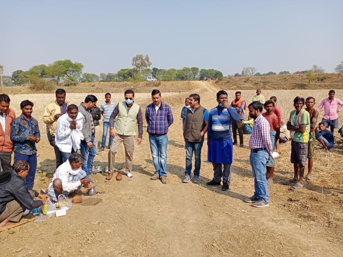 गोंडवाना समाज के महान पुरुषों के मूर्ति स्थापना को लेकर की गई भूमि पूजन