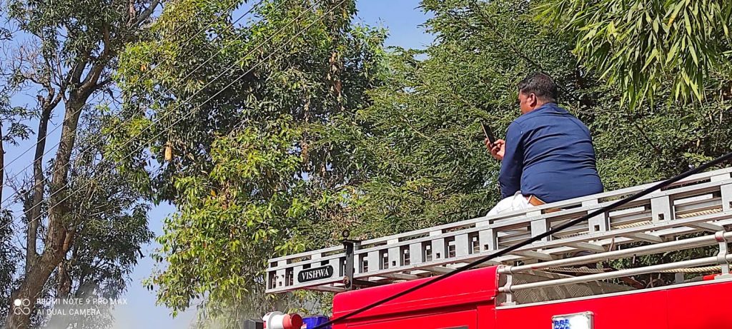 जिला मुख्यालय बैकुन्ठपुर के तलवापारा में पैरावट से भरे एक ट्रैक्टर ट्राली में मुख्य सडक के पर बिजली का तार से छू जाने के कारण आग लग गई। आग लगने के बाद देखते-देखते ट्राली में रखी पूरी पैरावट जलकर खाक हो गई। आग लगने के बाद लोगोें ने इसकी सूचना फायर विभाग को दी। जिसके बाद विभाग पहुॅचा तो विभाग के कर्मचारी आग पर काबू पाने की कोषिस कर रहे थे वही पर साहब के निर्देष पर कुछ कर्मचारियो को मोबाईल से विडियो बनाने में व्यसत देखा गया।