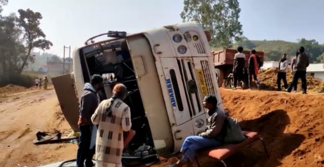 सवारियों से भरी बस अनियंत्रित होकर पलटी 6 लोग हुए घायल