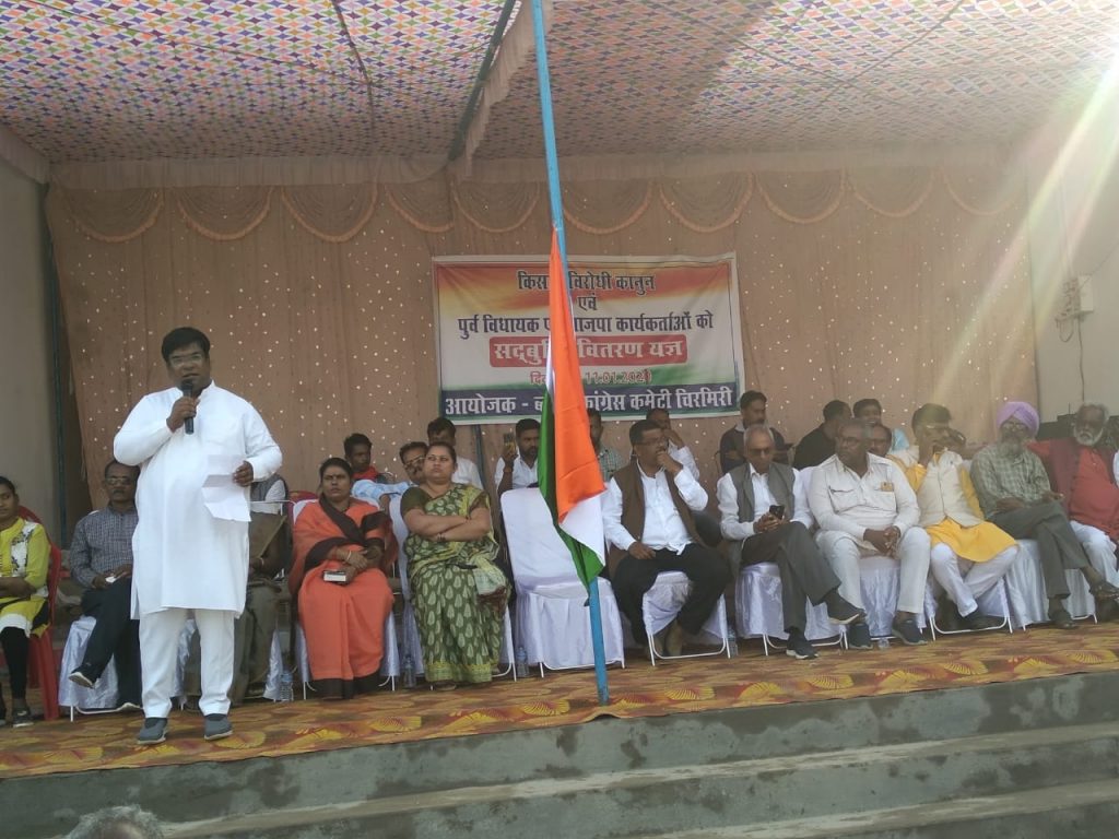 चिरमिरी बड़ा बाजार में कांग्रेस पार्टी के द्वारा किसान विरोधी कानून और पुर्व विधायक एवं भाजपा कार्यकर्ताओं को सद्बुद्धि वितरण यज्ञ का आयोजन किया गया है।