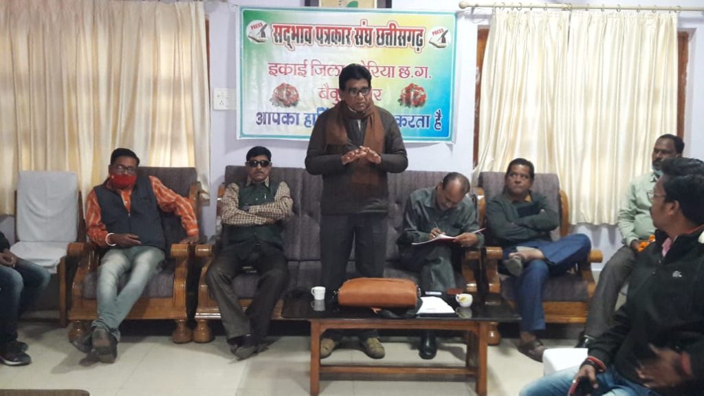 सद्भाव पत्रकार संघ छत्तीसगढ़ का अगला पड़ाव रहा सरगुजा संभाग के कोरिया जिले में !कोरिया रियासत से जिले में तब्दील हुए इस शहर में पत्रकारों को एकजुट करने और उन्हें संगठित कर सरकारी योजनाओं से लाभान्वित करने का एक बेहतर प्रयास सद्भाव पत्रकार संघ छत्तीसगढ़ द्वारा किया जा रहा है ! इसी कड़ी में कोरिया जिला मुख्यालय बैकुंठपुर में बुधवार को नवनिर्वाचित जिला इकाई का गठन किया गया ! इस अवसर पर कोरिया जिले के मनेंद्रगढ़, बैकुंठपुर ,खड़गंवा, चिरमिरी सोनहत, जनकपुर समेत जिले के सभी विकासखंड से आए पत्रकार साथी उपस्थित रहे! सभी पत्रकार साथियों ने सर्वप्रथम प्रदेश पदाधिकारियों का फूल मालाओं से स्वागत और सम्मान किया। इसके पश्चात सभी के बीच आपसी सहमति और सर्वसम्मति से कोरिया जिला इकाई का अध्यक्ष अशोक सिंह को चुना गया ।
