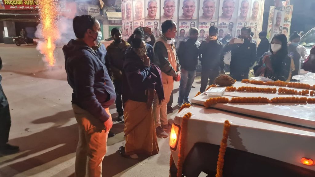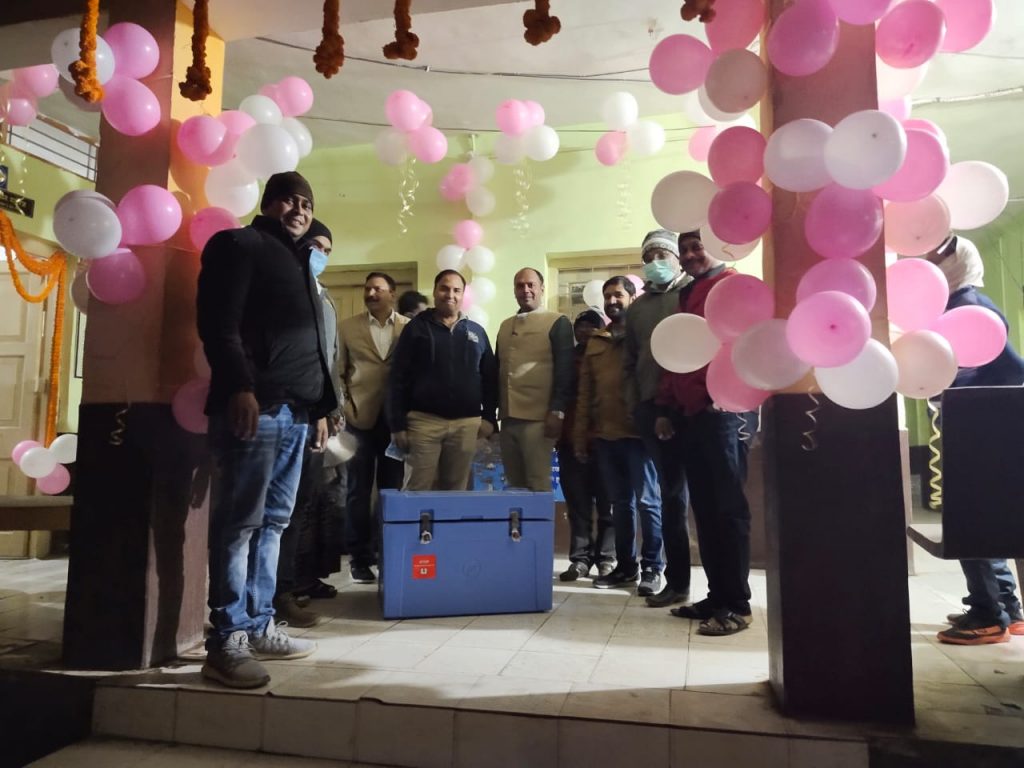 फूल वर्षा कर कोविशील्ड वैक्सीन का बैकुन्ठपुर के लोगों ने गर्मजोशी से किया स्वागत