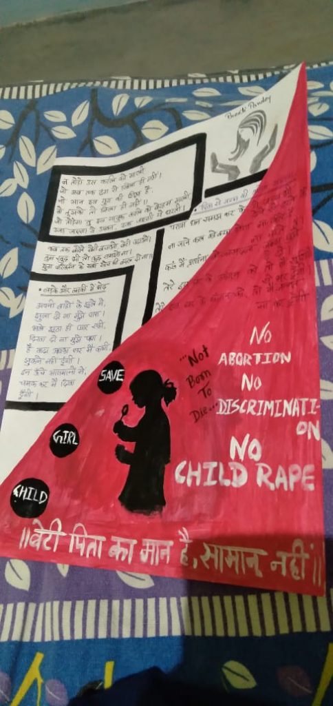 जिसके अंतर्गत पोस्टर एवं रंगोली प्रतियोगिताएं आॅनलाईन माध्यम से आयोजित की गई। इन कार्यक्रमों में स्वयं सेवकों द्वारा आमजनों को जागरूक करने के लिए बेहतर प्रदर्शन किया गया। इसी तरह ग्राम ओडगी में कु. सोनिया राजवाड़े एवं ग्रुप, ग्राम बस्ती में कु. वर्षा सिंह एवं ग्रुप और ग्राम आमापारा में कु. नीलम एवं ग्रुप द्वारा बेटी बचाओं बेटी पढ़ाओं थीम पर नुक्कड़ नाटक में नारियों पर होने वाले अत्याचार को चित्रण कर प्रस्तुत किया गया।
