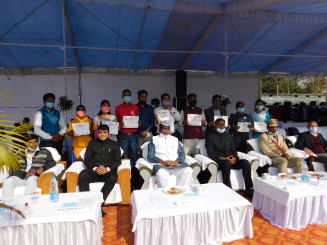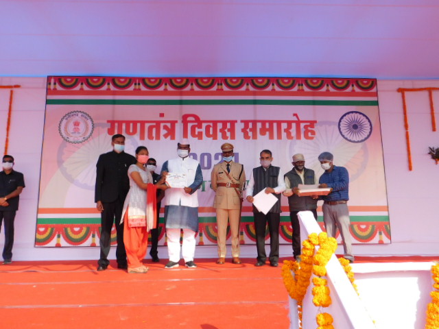 एवं कु. अल्फा बड़ा, पंडित ज्वाला प्रसाद उपाध्याय शासकीय महाविद्यालय पटना के छात्र बिहारी लाल शामिल हैं। इसी तरह उन्होंने जिले में निवासरत शहीद अधिकारी/कर्मचारी के आश्रितों को भी श्रीफल और षाल प्रदान कर सम्मानित किया। इस अवसर पर सोषल डिस्टेंसिंग का पालन करते हुए जिला एवं पुलिस प्रषासन के वरिष्ठ अधिकारी, वरिष्ठ नागरिकों, जनप्रतिनिधियों, मीडिया के प्रतिनिधिगण, शिक्षक-शिक्षिकाएं और मीडिया प्रतिनिधि एवं नगरवासी मौजूद थे।