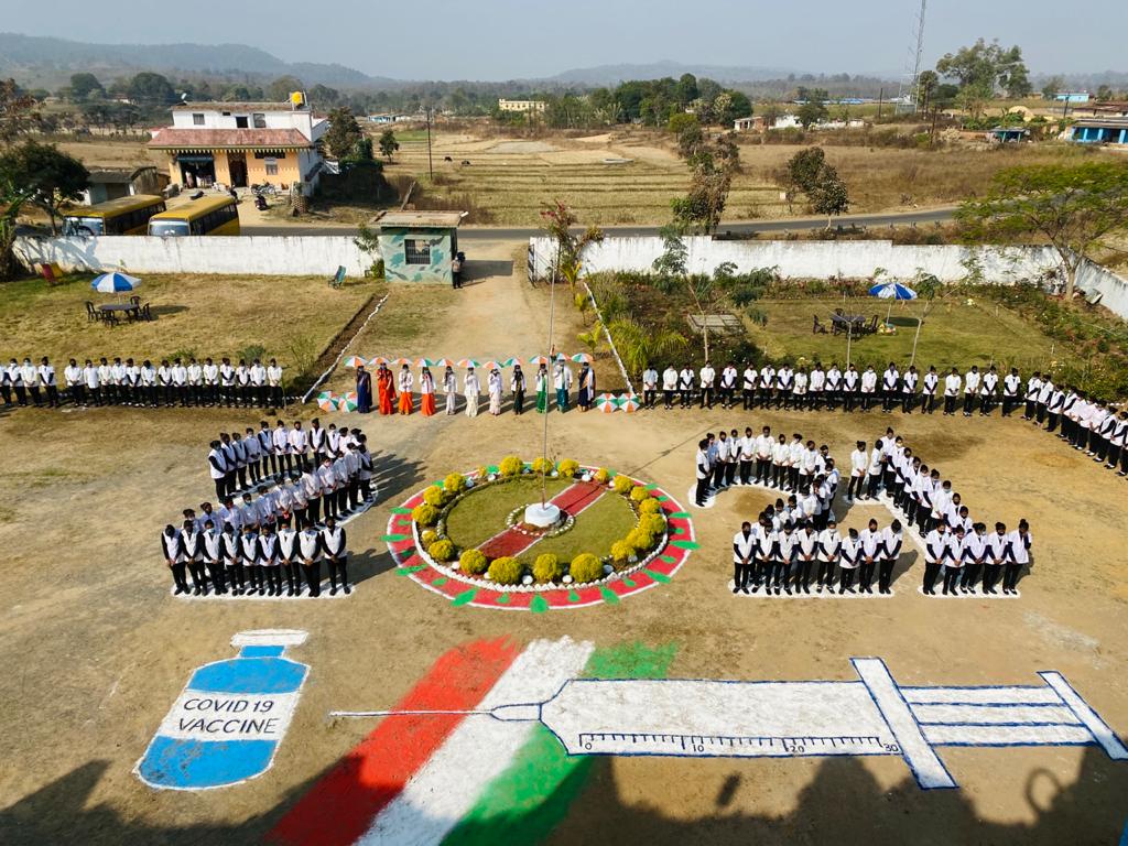 नर्सिंग कॉलेज में मानव श्रृंखला बनाकर भारत की कोरोना वैक्सीन का किया स्वागत