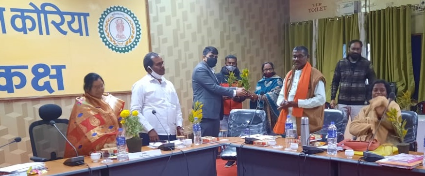 मनेन्द्रगढ़ जनपद अध्यक्ष डा विनय षंकर सिंह के द्वारा सामुदायिक बाड़ी विकास की जानकारी पर जिला पंचायत के मुख्यकार्यपालन अधिकारी कुणाल दुदावत ने बताया कि महात्मा गांधी नरेगा और अन्य योजनाओं के अभिसरण से पंजीकृत श्रमिक किसानों के सामुदायिक बाड़ी में फलोद्यान और उसके बीच अंतवर्तीय खेती से लाभ प्राप्त किया जा सकता है। उन्होने उपस्थित जनप्रतिनिधियों को इस योजना के लाभ के लिए ज्यादा से ज्यादा किसानों को तैयार करने का आग्रह किया। सदस्य श्री रविषंकर सिंह ने जनकपुर क्षेत्र में रेषम कीट पालन की बेहतर संभावनाओं के लिए एक कंेद्र खोले जाने की मांग की। इस पर जिला पंचायत सीइओ ने विभागीय अधिकारियों के कार्य प्रस्ताव राज्य सरकार को प्रेषित करने के निर्देष दिए। जिला पंचायत की सामान्य सभा की बैठक के अंत में जिला पंचायत के मुख्यकार्यपालन अधिकारी श्री दुदावत ने कलेक्टर कोरिया एस एन राठौर के मार्गदर्षन में बैकुण्ठपुर जनपद पंचायत अंतर्गत ग्राम पंचायत नरकेली के गौठान में ज्योति स्व सहायता समूह के द्वारा गोबर से बनाए जा रहे गमलों के बारे में सदस्यों को अवगत कराया। इसके साथ ही इसके प्रचार के लिए उन्होने जिला पंचायत अध्यक्ष, उपाध्यक्ष तथा सभी सदस्यों को इन गमलों में लगाए गए पौधे प्रदान किए। इस दौरान कृषि विभाग, मत्स्य विभाग, वनमंडल, जल संसाधन विभाग, उद्यान विभाग, श्रम विभाग, स्वास्थ्य विभाग, ग्रामीण यांत्रिकी सेवा, लोक स्वास्थ्य यांत्रिकी विभाग, अंत्यावसायी, विद्युत विभाग सहित अन्य विभागों के जिला स्तरीय अधिकारियों के साथ सहायक संचालक पंचायत श्रीमती ऋतु साहू, सहायक परियोजना अधिकारी, सहित अन्य विभागीय अधिकारी कर्मचारी उपस्थित रहे।