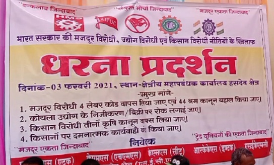 ट्रेड यूनियनों का एक दिवसीय धरना — मुख्य महाप्रबंधक कार्यालय के सामने किया प्रदर्शन