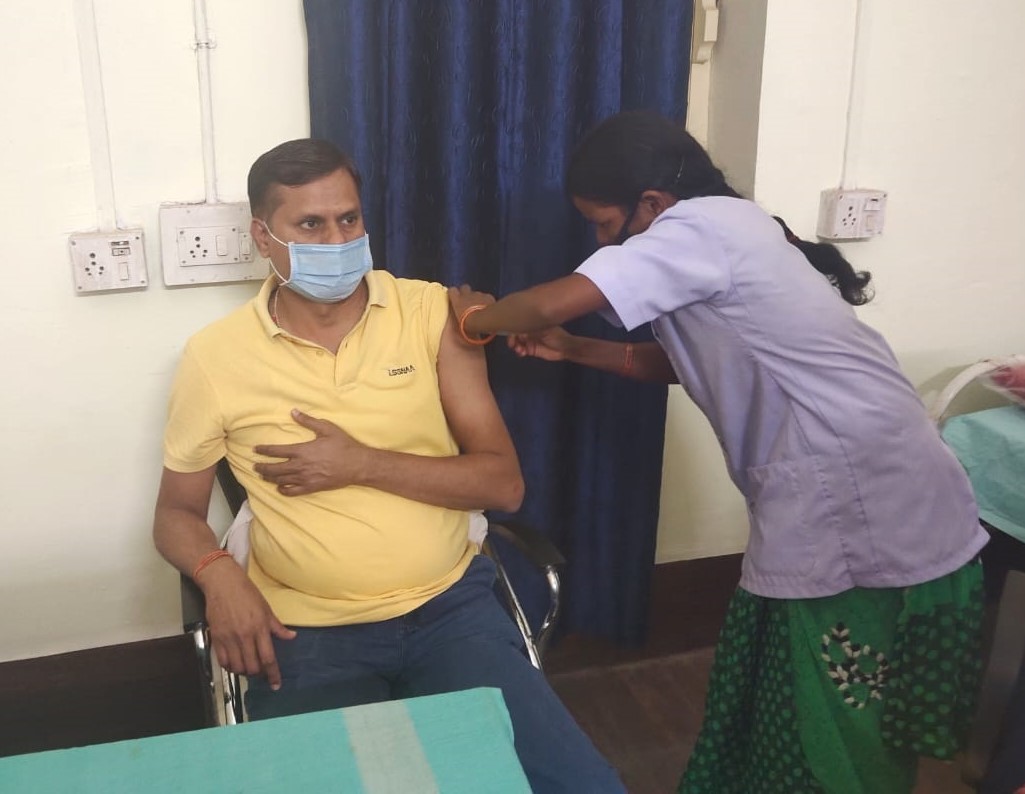 कलेक्टर एस एन राठौर ने आज जिला चिकित्सालय बैकुंठपुर में कोरोना वैक्सीन का दूसरा डोज़ लगवाया। मुख्य चिकित्सा एवं स्वास्थ्य अधिकारी डॉ. रामेश्वर शर्मा के मार्गदर्शन में जिला चिकित्सालय में पदस्थ आरएचओ चंद्रकली ने कलेक्टर श्री राठौर को कोविड वैक्सीन का दूसरा डोज़ लगाया। बता दें कि जिला चिकित्सालय बैकुंठपुर में 6 फरवरी को कलेक्टर एसएन राठौर ने कोरोना वैक्सीनेशन अभियान में शामिल होते हुए कोविड-19 से सुरक्षा के लिए वैक्सीन लगवाया था। राजस्व विभाग से फ्रंटलाइन वर्कर के रूप में कलेक्टर श्री राठौर को पहला टीका लगाया गया एवं उनकी अगुवाई में ही राजस्व विभाग के फ्रंटलाइन वर्कर्स को कोरोना वैक्सीन लगाया जा रहा है।