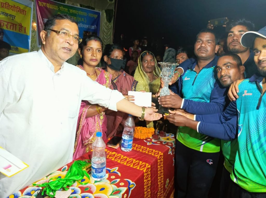 कार्यक्रम में मुख्य रूप से ब्लॉक कांग्रेस अध्यक्ष कृपाशंकर गुप्ता विक्रमादित्य सिंह देव वीरेंद्र सिंह देव जनपद ब्लॉक अध्यक्ष मोनिका सिंह पैकरा जनपद सदस्य श्रीमती प्रमिला राजवाड़े सरपंच श्रीमती सहोदरी उईके एवं समस्त पांच गण व ग्रामवासी के मध्य पुरस्कार वितरण का कार्यक्रम का आयोजन किया गया जिसमें बेस्ट बल्लेबाज मैन ऑफ द मैच बेस्ट कैच सहित नगद राशि एवं शील्ड से खिलाड़ियों को पुरस्कृत किया गया।