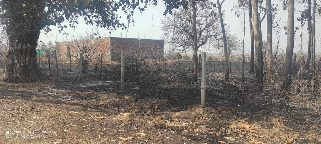 अज्ञात कारणों से लगी आग के कारण कोरिया जिले के सोनहत विकासखंड के घुघरा ग्राम पंचायत में स्थित उद्यान विभाग घुघरा नर्सरी एवं कोरिया वनमंडल के देवगढ़ वनपरिक्षेत्र के बीट कटगोड़ी के कक्ष क्रमांक 416 में व्यापक नुकसान होने की बात सामने आ रही है । इस दौरान जहां उद्यान विभाग नर्सरी के प्रभारी ने बताया कि नर्सरी में लगेे आम अमरूद एवं आंवले के लगभग 750 पौधे जलकर खाक हो गए। जोकि लगभग 2 हेक्टेयर में लगे हुए थे। वहीं पर दूसरी ओर वन विभाग 5 हेक्टयर में लगी नीलगिरी के प्लांटेशन में आग ने जिस तरीके से क्षति पहुंचाई है।