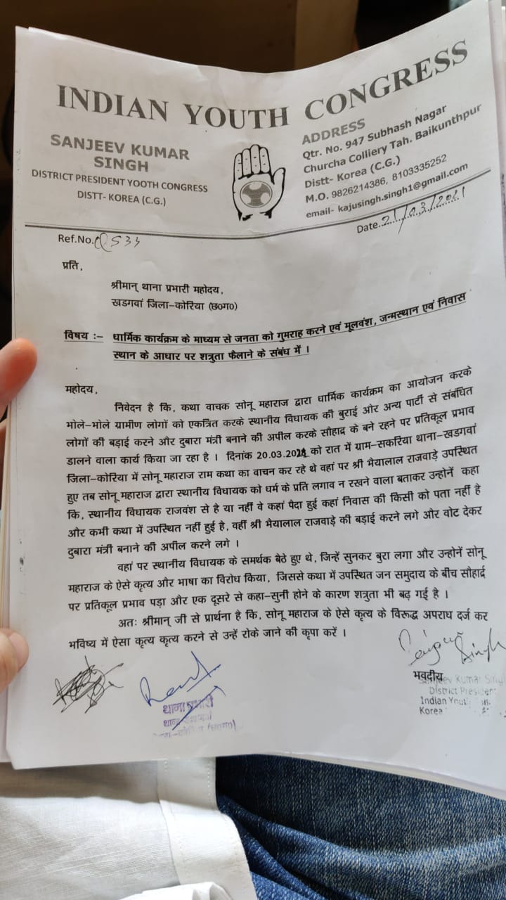 कथा वाचक के खिलाफ युथ कां्गेस ने थाने में की षिकायत, विडियो वायरल