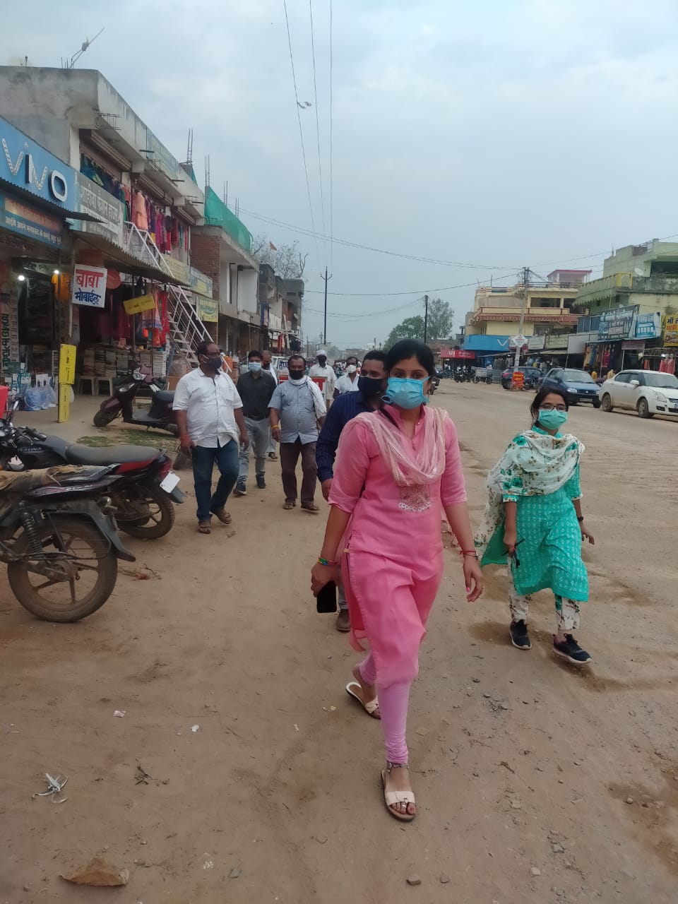 राजस्व एवं नगर पंचायत अमला ने दिये मास्क लगाने समझाइश