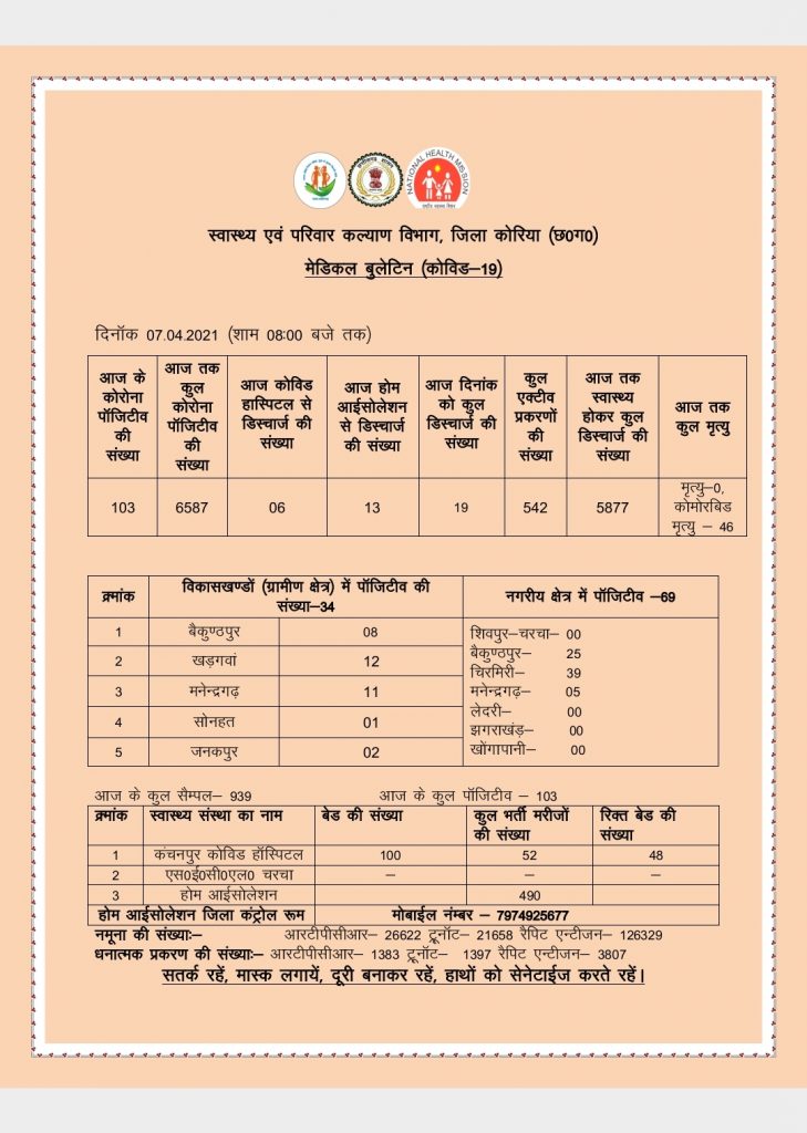 कोरोना मरीजों की संख्या अप्रैल में तेजी से बढ़ी है। कोरोना टेस्ट कराने वाले 100 व्यक्तियों में से 11वां व्यक्ति संक्रमित मिल रहा है। बुधवार को वायरोलॉजी लैब में 939 सैंपल की जांच हुई, जिसमें 1023 (10.97 फीसद) लोग संक्रमित पाए गए हैं। बैकुन्ठपुर में इससे पहले सितंबर 2020 में कोरोना मरीजों का आकड़ा इसके पार गया था। 10 दिन में पहले तक प्रतिदिन 50 से कम कोरोना मरीज शहर में मिल रहे थे, जो अब सैकड़ा को भी पार कर चुके हैं।