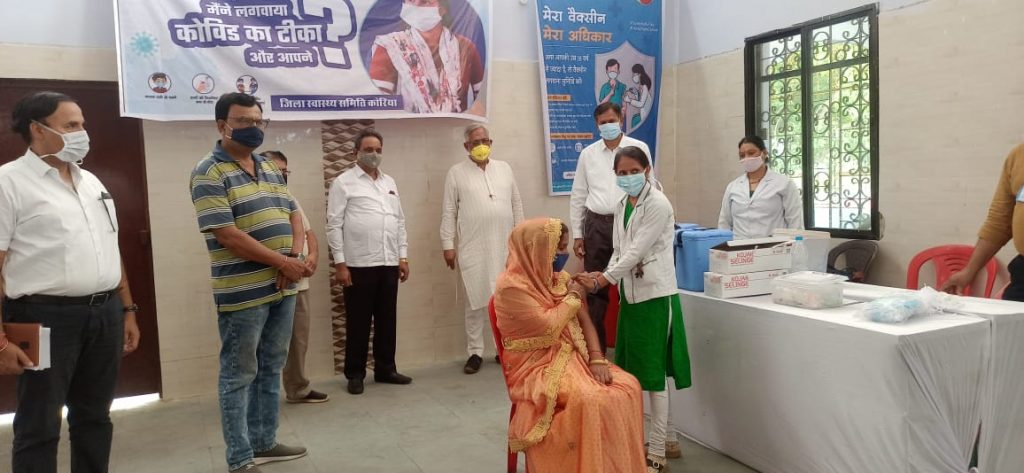 कोरिया जिले में 18 साल के ऊपर लोगों के लिए निशुल्क कोविड-19 टीकाकरण अभियान की शुरूआत की गई है। जिले को टीकाकरण के लिए टीके की पहली खेप मिलते के बाद प्रदेष मुख्यमंत्री भूपेश बघेल ने शनिवार को वीडियो कॉन्फ्रेंसिंग के माध्यम से छत्तीसगढ़ में 18 से 44 वर्ष के लोगों को निःशुल्क कोरोना टीका लगाने के अभियान की शुरूआत किया था जिसके बाद कोरिया जिले में टिकाकारण का आरम्भ भरतपुर सोनहत विधायक गुलाब कमरो के हाथो हुआ। उन्होंने इस दौरान जिले वासियो को कोविड-19 का टीका लगवाने वाले लोगों से चर्चा की और उन्हें कोरोना संक्रमण से बचाव के लिए नियमों का पालन करने की सलाह भी दी।