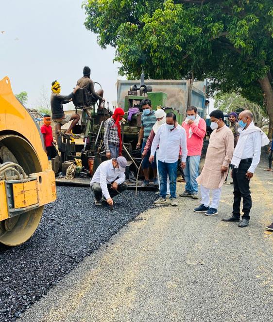 निर्माणाधीन खोपा तेलगांवा मार्ग का संसदीय सचिव पारसनाथ राजवाड़े ने किया निरीक्षण