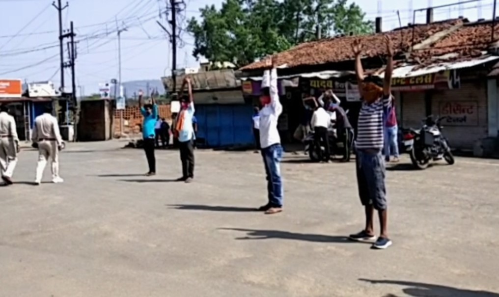 लाॅकडाउन-2 में फेज-3 के 3रें दिन शनिवार को जिले भर में पुलिस काफि स्िरकय नजर आई। खासकर बैकुन्ठपर में पहली बार प्रशासन सख्त नजर आया और बेवजह सडको पर निकलने लोगो को थानो के थानेदार समेत जिला प्रशासन की टिम जिसमें बैकुन्ठपुर यातायात विभाग के अधिकारी कर्ममारियो ने आने जाने बाइक सवारों को रोका और चालानी कार्यवाई की। तो दूसरी ओर जिले में इस दौरान सबसे एक्टिव थाने के तौर पर कार्य करने वाली मनेन्द्रगढ फिर पुलिस ने उनसे योग कराया और दोबारा निकलने पर कार्रवाई की चेतावनी देकर छोड़ दिया। पुलिस ने कहा- योगाभ्यास कराकर छोड़ा है, कल दिखेंगे तो गाड़ी थाना जाएगी । योगा के दौरान पुलिस ने सोशल डिस्टेंसिंग का भी पूरा ध्यान रखा, सभी को उचित दूरी पर खड़ा किया। शनिवार को बेवजह सड़कों पर निकले करीब 3 दर्जन बाइक सवारों को पकड़ा गया। इसके बाद पुलिस ने सभी को बाइक से उतारकर सड़क पर खड़ा किया। फिर सभी युवकों से कुछ देर तक योगाभ्यास कराया गया। इसके बाद पुलिस ने सभी को हिदायत देकर छोड़ दिया। पुलिस ने कहा कि अगर भविष्य में कोई भी लॉकडाउन का उल्लंघन करते पाया गया तो उसकी गाड़ी जब्त कर ली जाएगी।