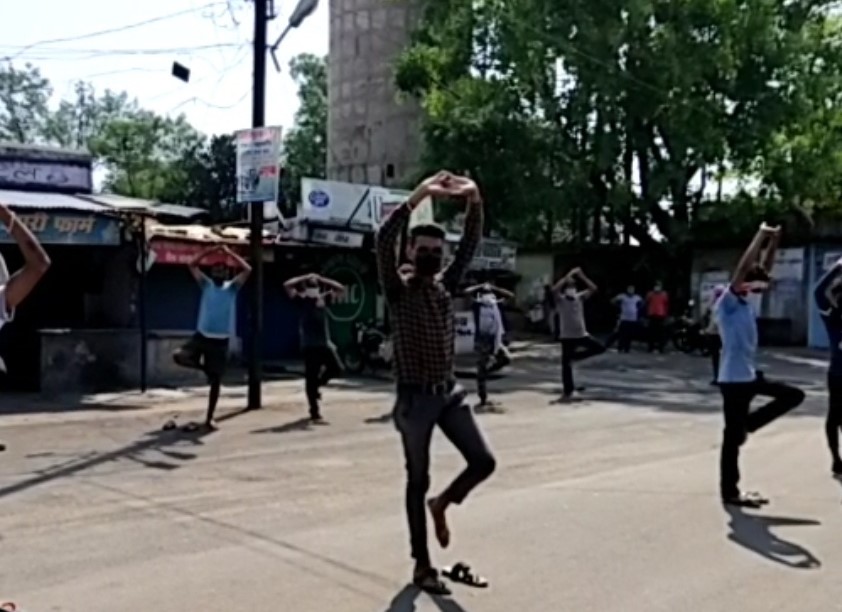 लॉकडाउन में लगातार यह देखने में आ रहा है कि खासकर मनेन्द्रगढ थाना क्षेत्र में सड़क पर पुलिस ने बेवजह सडको पर विचरण करने वाले लोगो को बिना वजह, बिना हेलमेट और बिना मास्क के सड़क पर निकलने की शपथ दिलाने के साथ साथ जिला प्रशासन के द्धारा जारी गाईडलाईन की नियमावली की पाठषाला लगाते हुए लोगो को याद कराया । इस दौरान उन्होंने ट्रिपल लोड न चलने की भी शपथ दिलाई। साथ ही कई तरह के योगाभ्यास भी युवकों से कराए गए। योग करवाने के दौरान पुलिस ने सोशल डिस्टेंसिंग का भी पूरा ध्यान रखा और सभी को उचित दूरी पर खड़ा किया।