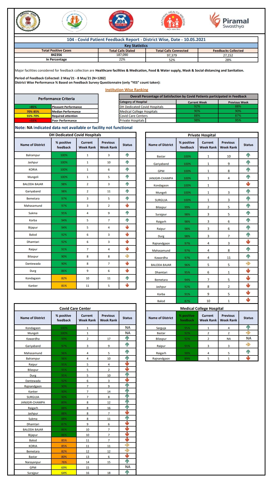 कोविड पेंशेंट फीडबैक रिपोर्ट में कोरिया जिले ने फिर हासिल किया प्रथम रैंक