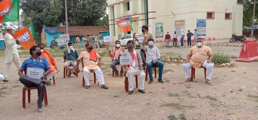 इसी क्रम में आज लखनपुर और कुन्नी मंडलों में दिन सोमवार को दोपहर 3:00 बजे बिलासपुर अंबिकापुर मुख्य मार्ग लखनपुर बस स्टैंड से होते हुए भारतीय जनता पार्टी के प्रदेश प्रवक्ता अनुराग सिंह देव के नेतृत्व में कांग्रेस की भूपेश सरकार के खिलाफ जोरदार नारेबाजी लगाते हुए थाना परिसर में पहुंचा गया जहां सभी भारतीय जनता पार्टी के कार्यकर्ताओं द्वारा थाना प्रभारी सुरेश चंद मिज एवं मौके पर मौजूद नायब तहसीलदारों डॉ एजाज हाशमी श्रुति धुर्वे से मांग किया गया कि हम सब को आप गिरफ्तार करो परंतु थाना प्रभारी एवं नायब तहसीलदार के द्वारा यह कहा कि आपलोगो के खिलाफ अपराध पंजीबद्ध नही होने के कारण हम आपको गिरफ्तार नहीं कर सकते ।