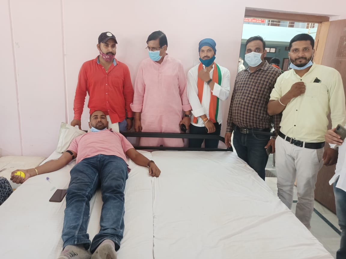 सेवा ही संगठन के तहत भाजयुमो जिलाध्यक्ष जिला रविन्द्र भारती के नेतृत्व में 64 कार्यकर्ताओं ने किया रक्तदान