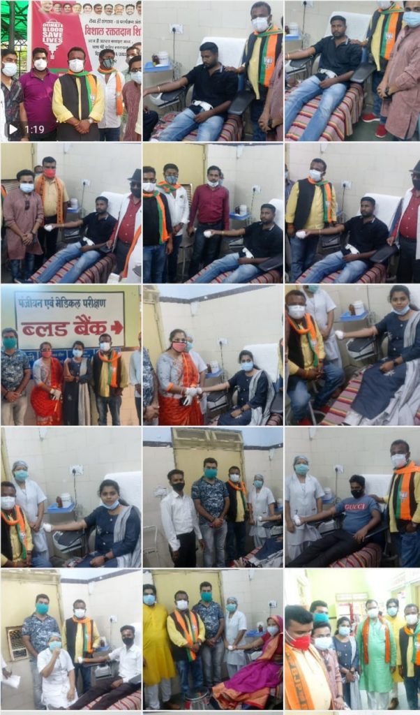 भारतीय जनता युवा मोर्चा के कार्यकर्ताओं ने शनिवार को प्रदेश के सभी जिलों में सेवा ही संगठन कार्यक्रम के तहत और केंद्र की मोदी सरकार के 7 वर्ष पूर्ण होने के अवसर पर रक्तदान शिविर लगाकर रक्तदान किया। भाजयुमो के प्रदेश मीडिया प्रभारी उमेश घोरमोड़े ने बताया कि भारतीय जनता युवा मोर्चा के कार्यकर्ताओं ने सेवा ही संगठन कार्यक्रम के तहत सेवा के संकल्प के साथ मोदी सरकार के ऐतिहासिक उपलब्धियों के साथ 7 वर्ष पूर्ण होने की ख़ुशी का इजहार सेवा के उत्सव के रूप में रक्तदान कर किया। घोरमोड़े ने बताया कि भाजयुमो प्रदेश नेतृत्व के आह्वान पर पूरे प्रदेश के कार्यकर्ता रक्तदान कर सेवा कार्य में जुटे थे और शाम 5 बजे तक प्राप्त आंकड़ों के अनुसार इस कोरोना महामारी की विपरीत परिस्तिथि के बीच भी भाजयुमो कार्यकर्ताओं ने प्रदेशभर में 1500 यूनिट रक्तदान किया हैं, यह अपने आप में इस संकट की घड़ी में भाजयुमो के लिए बड़ी उपलब्धि हैं।