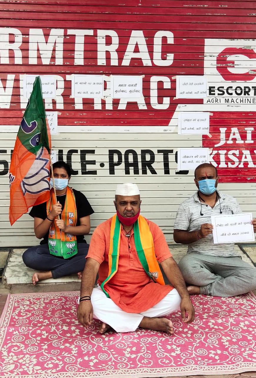 बंगाल में हत्या के विरोध में भाजपा नेताओ ने घर के बाहर जताया विरोध