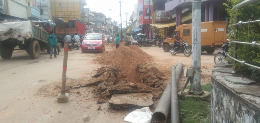 कोरिया जिला मुख्यालय बैकुनठपुर में मुख्य मार्ग पर सड़क किनारे बेतरतीब तरीके से हो रहे पाईप लाईन निर्माण ने शहर की यातायात व्यवस्था को बिगाड़ रखा हैं। स्थिति यह है कि सोमवार को सड़क पर लंबा जाम लगा रहा। मुख्य मार्ग घडी चैक के दोनो हिस्से में सड़क के दोनों ओर खड़े भारी वाहनों से दुर्घटना की आशंका हुई है। वहीं सड़क पर चलने वाले राहगीरों के अलावा बडे छोटे वाहनो को भी परेशानियों का सामना करना पड़ा। बारिश के दिनो मे बारिश के दिनो में किये जा रहे काम की वजह से खोदी गई मिटटी का मलवा बहकर सडको पर पसर रहा है।