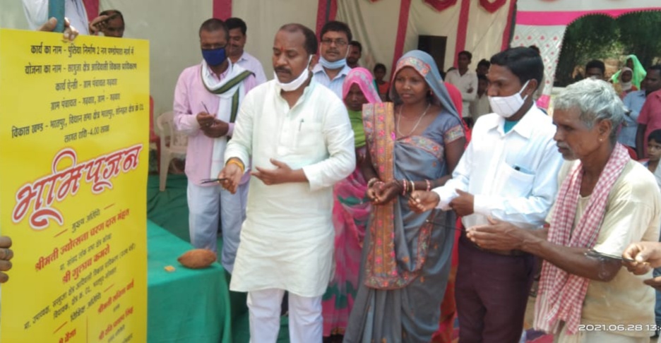 सविप्रा उपाध्यक्ष व भरतपुर सोनहत विधायक गुलाब कमरो सोमवार को दो दिवसीय प्रवास पर अपने विधानसभा क्षेत्र के सुदूर वनांचल क्षेत्र भरतपुर पहुचे जहां पर उन्होंने अपने प्रवास के पहले दिन विभिन्न विकास कार्यों की आधारशिला रख कर भूमिपूजन कर 7 करोड़ 18 लाख रुपये की सौगात दी ! साथ ही सम्बंधित ग्रामो में लोगो की समस्याओं को सुन उसका निराकरण किया ! अपने दौरे के दौरान विधायक श्री कमरो ग्राम पंचायत खितौली पहु॑चकर इंद्रभान सिंह घर से सखसेन घर तक बनने वाली सीसी सड़क निर्माण कार्य लागत राशि 5 लाख का भूमिपूजन किया खतौली ग्राम में विधायक ने लोगो की समस्याएं सुनी और उनका निराकरण भी किया। इसी के उपरांत विधायक ग्राम पंचायत बहरासी पहुचे जहां उन्होंने हायर सेकंडरी स्कूल पहुँच मार्ग हेतु सीसी सड़क निर्माण लागत राशि 13 लाख 84 हजार का भूमिपूजन किया, ग्राम पंचायत बहरासी में ही सोलर आधारित पाईप लाईन विस्तार-5 करोड़ 51 हजार 68 हजार का भी भूमिपूजन कर लोगो की समस्याएं सुनी और उनका निराकरण किया। ग्राम पंचायत कुवारपुर में पेयजल व्यवस्था हेतु(रेट्रोफिटिंग योजना)-60 लाख 12 हजार और ग्राम पंचायत गढ़वार में 2 नग पुलिया निर्माण कार्य-4 लाख का भूमिपूजन किया। विधायक गुलाब कमरो ने ग्राम पंचायत माड़ीसरई में पेयजल व्यवस्था हेतु(रेट्रोफिटिंग योजना)-63 लाख 80 हजार एवं सीसी सड़क निर्माण कार्य-10 लाख 35 हजार का भूमिपूजन किया ,ग्राम पंचायत डोम्हरा में सीसी सड़क निर्माण कार्य-9 लाख 56 हजार का भूमिपूजन कर लोगो से उनकी समस्याएं सुनी कई समस्याओं का मौके पर त्वरित निराकरण किया और अधिकारियों को आवश्यक दिशा निर्देश दिए। विधायक गुलाब कमरो ने शाम को विश्रामगृह जनकपुर में आमजनों से मुलाकात कर व प्रशासनिक अधिकारियों से चर्चा कर क्षेत्र की समस्याओं व अन्य जन हित से जुड़े मुद्दों पर आवश्यक निर्देश दिए !