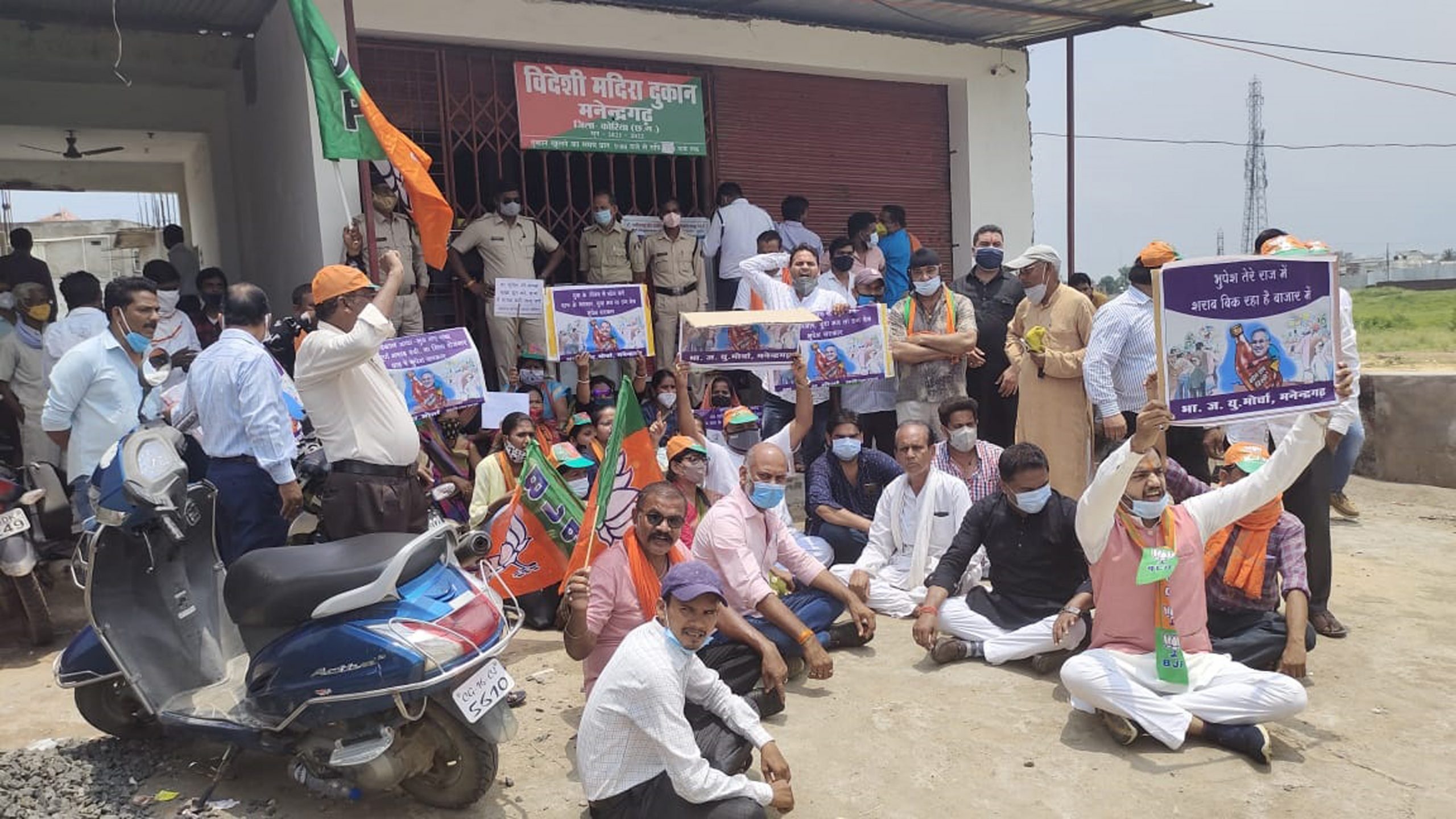 एनएच पर संचालित शराब दुकान हटाने बीजेपी ने किया प्रदर्शन
