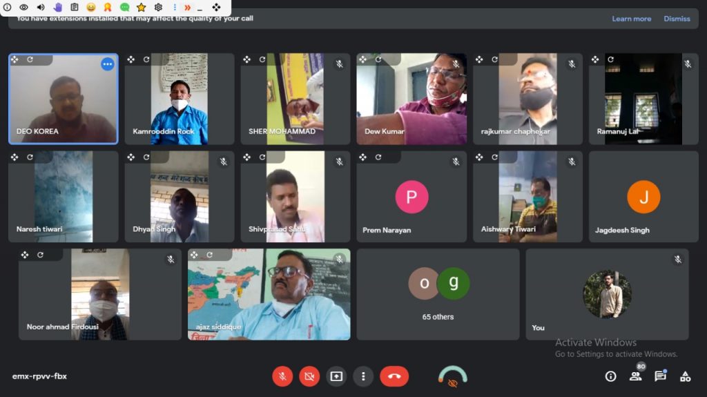 जिला शिक्षा अधिकारी द्वारा आज कोरिया जिले के समस्त विकासखंड शिक्षा अधिकारी, सहायक विकास खंड शिक्षा अधिकारी, खंड स्रोत समन्वयक, संकुल प्रभारी प्राचार्य एवं शैक्षिक समन्वयको की वर्चुअल बैठक ली गई। बैठक के मुख्य एजेंडा में शामिल 2 अगस्त से प्रारंभ हुए शालाओ में कोरोना गाइडलाइन का कड़ाई से पालन करने हेतु दिशा निर्देश दिए गए। साथ ही शिक्षा विभाग में कार्यरत कर्मचारी-अधिकारी को 1 सप्ताह के भीतर अनिवार्य रूप से वैक्सीनेशन कराते हुए संस्था प्रमुख द्वारा प्रमाण पत्र प्रस्तुत करने कहा गया।