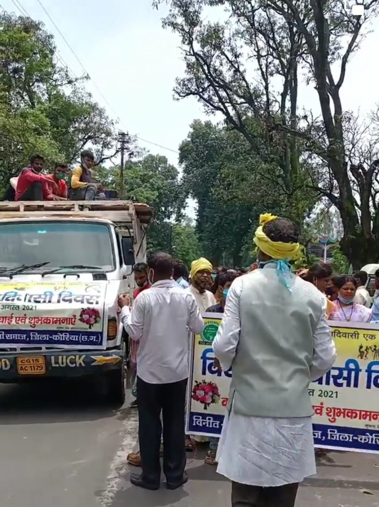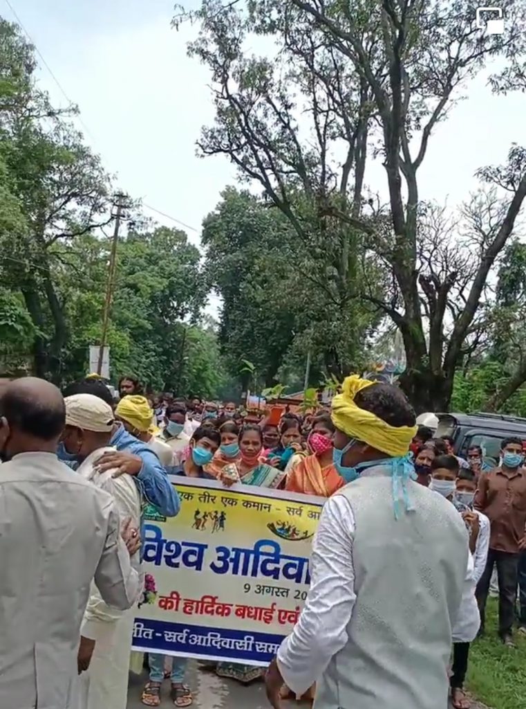 सुबह से हो रही बारिश के बावजूद 9 अगस्त विश्व आदिवासी दिवस के मौके पर आज सोमवार को धरमपुरा बैकुन्ठपुर में आदिवासी समाज ने विशाल रैली निकाली। इस विशाल कार्यक्रम को देखते हुए पुलिस की कड़ी सुरक्षा व्यवस्था भी की गई थी। इस रैली का सबसे बड़ा आकर्षण नृत्य रहा, इस दौरान सभी लोग नाचते-गाते दिखे। कार्यक्रम के संबंध में सर्व आदिवासी समाज के अध्यक्ष शरण सिंह ने बताया कि संयुक्त राष्ट्र संघ की आमसभा में 23 दिसंबर 1994 को पारित प्रस्ताव के अनुसार 9 अगस्त को विश्व आदिवासी दिवस घोषित किया गया, 9 अगस्त 1995 को पहला विश्व आदिवासी दिवस धूमधाम से मनाया गया। आदिवासी समाज के मानवीय अधिकारों का संरक्षण हो, उसके जल, जंगल, जमीन के अधिकार, अस्मिता, आत्मसम्मान कला संस्कृति और अस्तित्व कायम रहे, एवम शिक्षा का व्यापक जन जागृति एवम प्रयत्नों की आवश्यकता के मद्देनजर में यह दिवस मनाया जाता है।