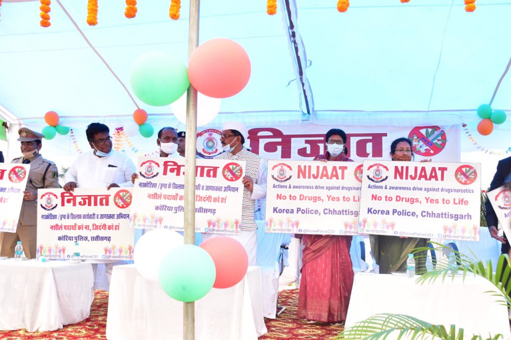 नारकोटिक्स, ड्रग्स व अवैध शराब के विरुद्ध कोरिया पुलिस ने “निजात” कार्यक्रम शुरू किया, जिसमें कार्यवाही, जन-जागरूकता अभियान व पुनर्वास में मदद शामिल हैं