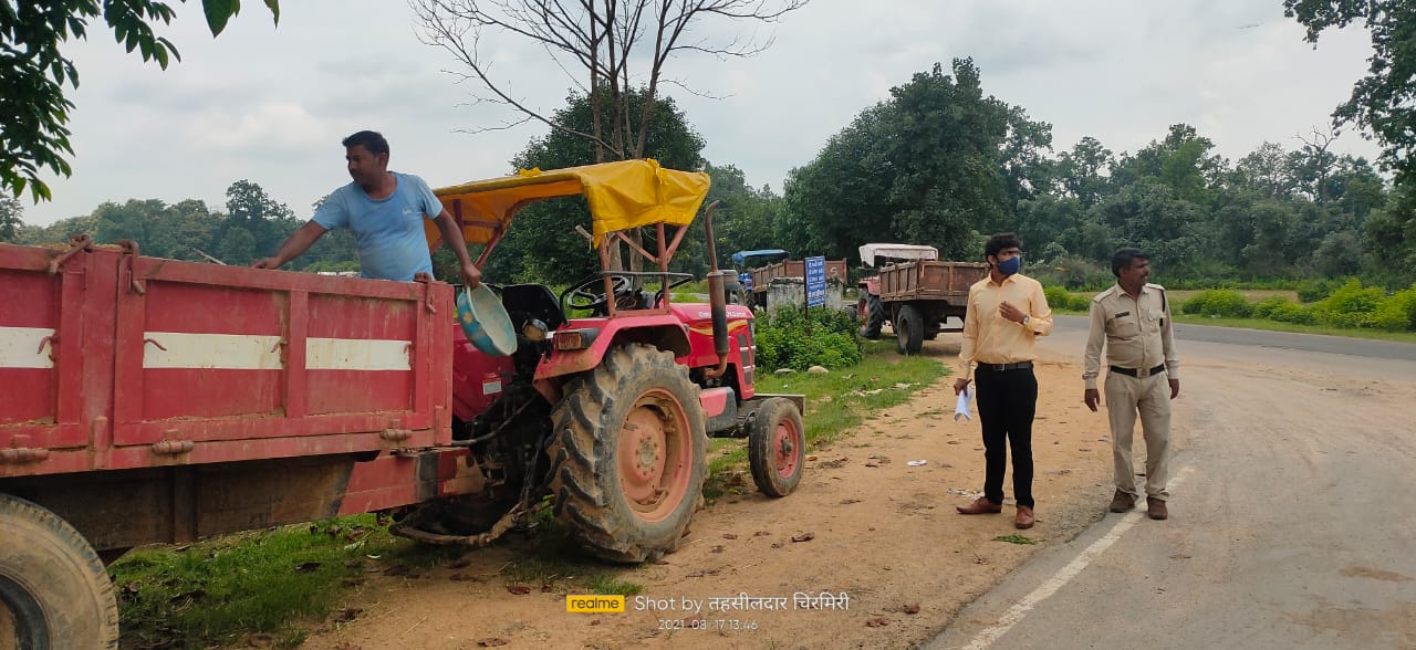 बंजारीडांड से रेत के अवैध उत्खनन परिवहन पर 3 ट्रैक्टर को तहसीलदार नें पकड़ा