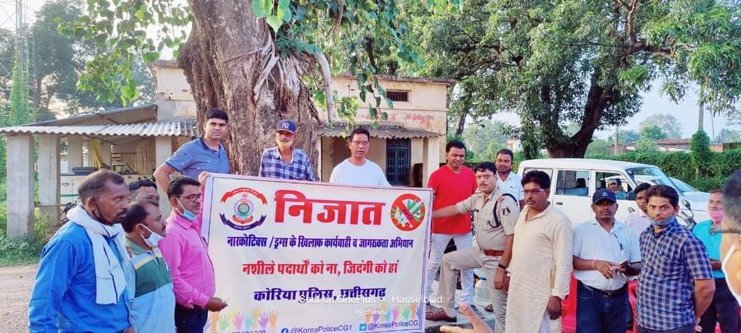 कोरिया पुलिस द्वारा नशा मुक्त कोरिया हेतु चलाये जा रहे निज़ात अभियान की इसी कड़ी में आज दिनाक 21/8/2021 को चिरमिरी हल्दीबाड़ी में एन सी एच क्लब में पुलिस अधीक्षक कोरिया द्वारा जन जागरूकता का कार्यक्रम रखा गया। उक्त कार्यक्रम में गायत्री परिवार के सदस्यगण, भगवती सेवा संस्थान के लोग, व्यापारीगण, पत्रकार, आम नागरिक, महिला पुलिस वालेंटिर एवं महिला समूह उपस्थित हुए। जिसमे मुख्य रूप से पुलिस अधीक्षक द्वारा निजात अभियान के कार्ययोजना, लाभ तथा नारकोटिक्स/ड्रग्स नशा से पड़ने वाले दुषपरिणाम के बारे मे विस्तृत चर्चा किया गया, इस अभियान के व्यापक प्रचार-प्रसार और इसे सफल बनाने के साथ ही ड्रग्स से निजात दिलाने के लिए आम जनो की राय भी लिया गया। पूरे कार्यक्रम मे इस अभियान की गहन चर्चा हुई एवं आमजनों से नशा मुक्त कोरिया बनाने का शपथ भी लिया गया। सभी उपस्थित गणमान्य लोग इस कार्यक्रम से काफी खुश हुए व कोरिया पुलिस की प्रशंसा भी किये तथा इस अभियान में भरपूर सहयोग देने व सफल बनाने में हरसंभव मदद का विश्वास दिलाये। कार्यक्रम मे पुलिस अधीक्षक संतोष कुमार सिंह, नगर पुलिस अधीक्षक पी पी सिंह, अनुविभागी दण्डाधिकारी चिरमिरी पी वी खेस, डाक्टर जयंत यादव CHC, चिरमिरी थाना प्रभारी अश्वनी सिंह, सऊनि जे डी कुशवाहा, सऊनि धनंजय सिंह, अमित जैन, यशवंत सिंह, चन्द्रसेन सिंह, दिनेश उइके तथा अन्य स्टाफ व आमजन का योगदान रहा।