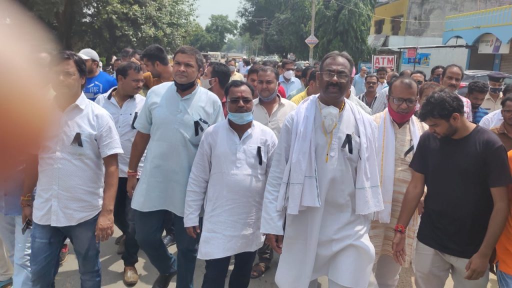 भाजपा के वरिष्ठ नेता व उपाध्यक्ष शैलेश शिवहरे के नेतृत्व में कोरिया जिला विभाजन के बाद कोरिया जिले के मुख्यालय बैकुंठपुर में सोमवार से कोरिया बचाओ मंच के बैनर तले क्रमिक धरना प्रदर्शन का आयोजन शुरू हो गया। वहीं पर दूसरी ओर व्यापारी संघ समेत दोनों ही राजनीतिक दलों के लोग शहरवासियो के साथ कलेक्ट्रेट तक रैली निकालकर कोरिया कलेक्टर को व्यापारी संघ की ओर से ज्ञापन सौप यह मांग की है कि कोरिया जिले के विभाजन में कोरिया के साथ किसी प्रकार का अन्याय बर्दाश्त नहीं किया जाएगा। इस दौरान पूर्व नगरपालिका अध्यक्ष शैलेश शिवहरे ने स्पष्ट कर दिया है कि हमें किसी भी प्रकार से अन्याय अस्वीकार है कोरिया जिले के विभाजन में संपूर्ण न्याय होना चाहिए। जिसमें कोटाडोल एवं खंडगवा समेत बचरापोड़ी आदि क्षेत्रों को कोरिया जिले में सम्मिलित किया जाए। वरना आने वाले समय में आंदोलन और तेज किया जाएगा। इससे पूर्व कोरिया बचाओ मंच के नेतृत्वकर्ता शैलेश शिवहरे ने हमसे बातचीत में स्पष्ट कर दिया है कि हम अपनी मांगों से पीछे नहीं हटेंगे। अब यह कां्रगेस को सोचना है कि उन्हे कोरिया जिले वासियो के विरोध में खडा होना है या फिर हमारे साथ। इस दौरान सभी ने काली पट्टी लगाकर जिले के विभाजन का विरोध भी प्रकट किया । बताया जा रहा है कि विगत 4 दिनों से लगातार व्यापारी संघ द्वारा काली पट्टी लगाकर जिले के विभाजन का विरोध किया जा रहा है। इस दौरान भाजपा उपाध्यक्ष शैलेश शिवहरे गौरक्षा वाहिनी के जिला अध्यक्ष अनुराग दुबे व्यापारी महेंद्र वैघ व्यापारी धनेंद्र मिश्रा के साथ भाजपा प्रवक्ता बसंत राय पूर्व नगरपालिका उपाध्यक्ष एवं भाजपा नेता सुभाष साहू सहित सैकड़ों की संख्या में बैकुंठपुर के व्यापारी एवं आम नागरिक मौजूद रहे ।