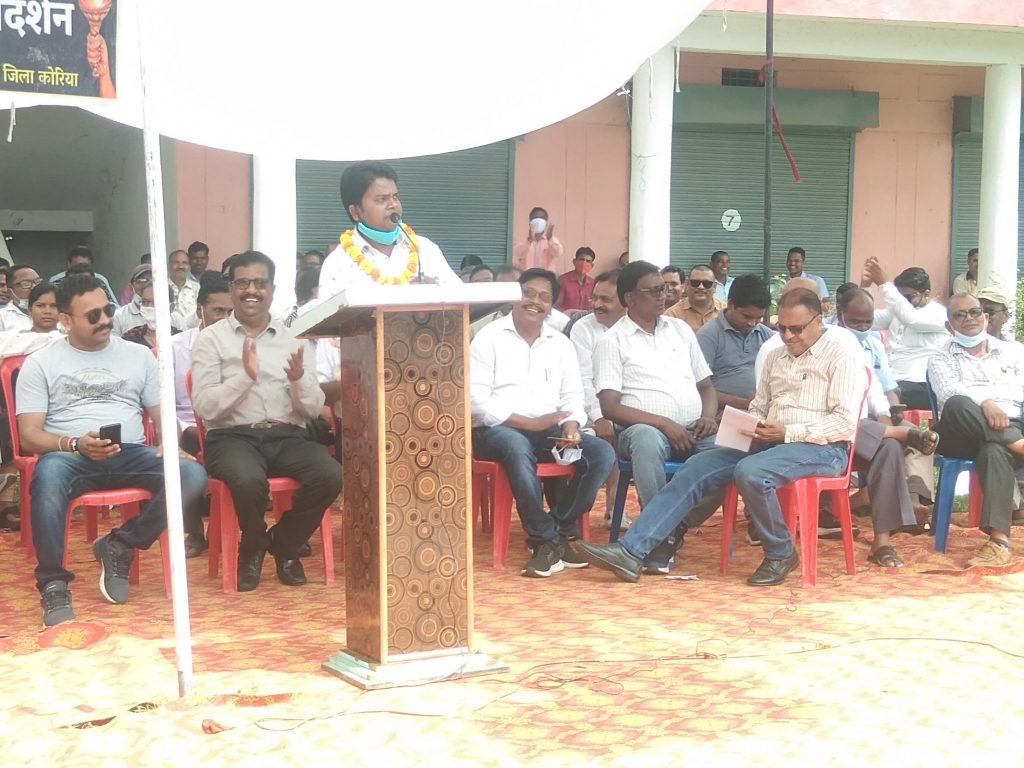 प्रदेश भर के साथ शुक्रवार को जिले के सभी सरकारी कार्यालयो में काम काज ठप्प रहा। इस दौरान बैकुन्ठपुर के छिदडाढ में आयोजित कार्यक्रम में सारे नियम कायदो की धज्जिया उठाते नजर आये। इस दौरान 90 फिसद आंदोलन कर्मी बैगर मास्क और फिजिकल डिस्टेंसिंग के कोरोना काल में इस कार्यक्रम में इस संघो में दिग्गजो का हाल जिसमें वन कर्मचारी संघ के नेता पवन रुपलिया सहित कई रिटायर नेताओ का हाल एैसा ही नजर आया। जिले के तहसील मुख्यालयों में मुख्यमंत्री के नाम ज्ञापन सौंपा । कर्मचारी-अधिकारी फेडरेशन की मांग है कि केंद्र के समान राज्य के कर्मचारी-अधिकारियों को भी महंगाई भत्ता दिया जाए। महंगाई भत्ता समेत अपनी 14 सूत्रीय मांगों को लेकर आंदोलन कर रहे हैं आज सरकारी कार्यालय बंद होने से आम जनता को परेशानियों का सामना करना पड़ेगा।