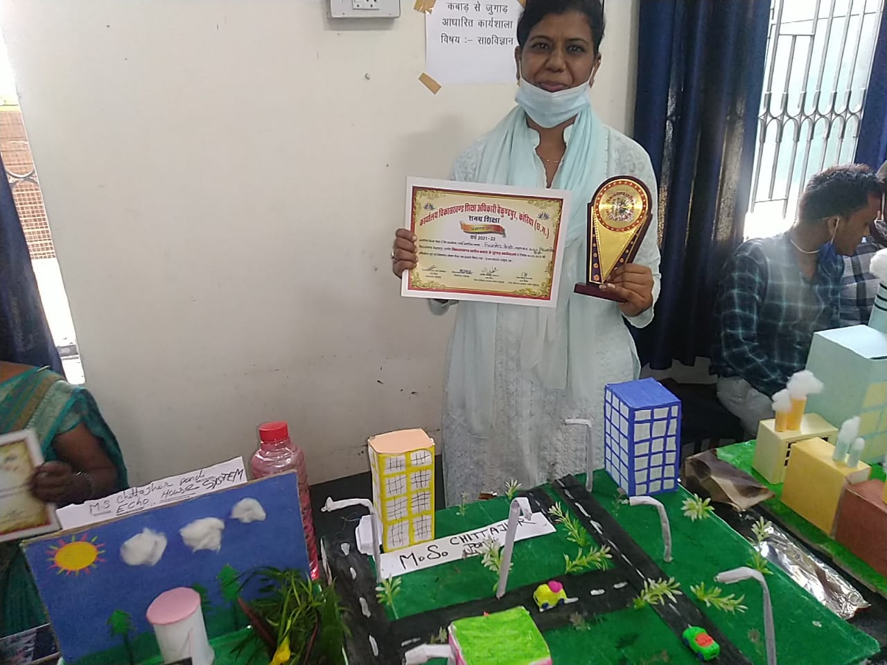 कबाड से जुगाड प्रदर्शन कार्य क्षेत्र का आयोजन बैकुंठपुर के हाई स्कूल बालक शाला मे किया गया