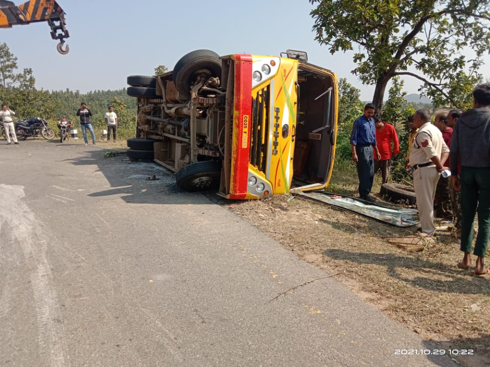 सोनहत से बैकुन्ठपुर आ रही बस शिवघाट में अनियंत्रित होकर पलटी, 11 यात्री घायल…….
