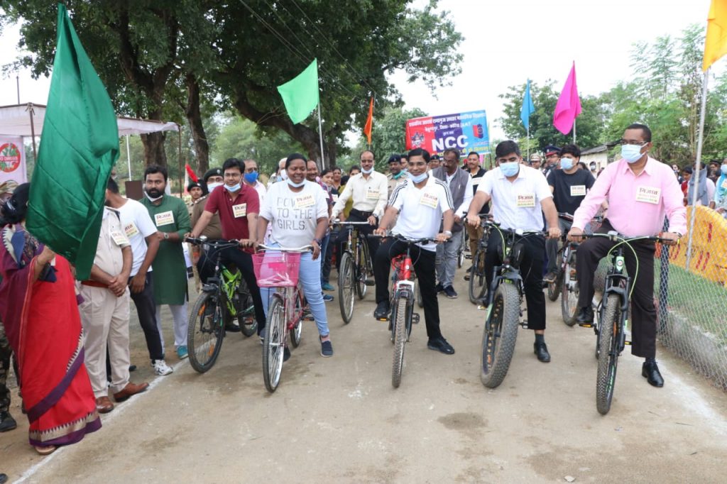 जिसे अतिरिक्त पुलिस अधीक्षक श्रीमती मधुलिका सिंह के मार्गदर्शन में रक्षित केंद्र बैकुंठपुर से झुमका बांध तक की साइकिल रैली रखी गई उक्त रैली में लगभग 300 से अधिक छात्र-छात्राएं विभिन्न संगठन राजनीतिक पार्टियों के प्रमुख पत्रकार एवं पुलिस अधिकारी कर्मचारी उपस्थित रहे कार्यक्रम की शुरुआत में मुख्य अतिथि संसदीय सचिव अंबिका सिंह देव एवं अन्य अतिथियों का पुलिसकर्मियों द्वारा पुष्पगुच्छ भेंट कर स्वागत किया गया। स्वागत पश्चात जिला दंडाधिकारी कोरिया श्याम धावडे, मुख्य कार्यपालन अधिकारी कुणाल दुदावत, नगर सेना सेनानी डीसी शेखर, सिविल सर्जन सुनील गुप्ता एवं डॉ राजेंद्र बंसरिया सभी ने अपना-अपना उद्धबोधन देते हुये नशे के खिलाफ #निजात अभियान की प्रशंसा की एवं पुलिस कप्तान समेत सभी पुलिस विभाग को बधाईया दी।