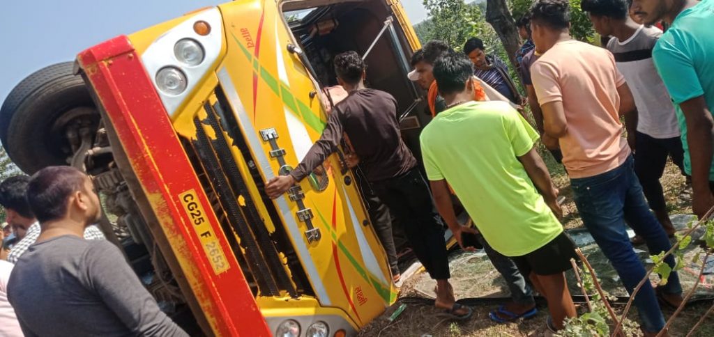 सोनहत से कोरिया जिला मुख्यालय बैकुन्ठपुर आ रही जायसवाल बस क्रमांक सीजी 25एफ 2652 सोनहत थाना अंतर्गत कटगोडी शिवघाट के समीप अनियंत्रित होकर पलट गई है। हादसा शुक्रवार सुबह तकरीबन 8.15 बजे का बताया जा रहा है। मिली जानकारी में बताया गया है कि बस में लगभग 40 यात्री सवार थे जिसमें अनियंत्रित होकर बस पर जाने के कारण 12 दर्जन यात्री घायल बताए जा रहे हैं। जिन्हें इलाज के लिए जिला अस्पताल बैकुन्ठपुर को भेजा गया है। जहां पर सभी घायलो का ईलाज चल रहा है।