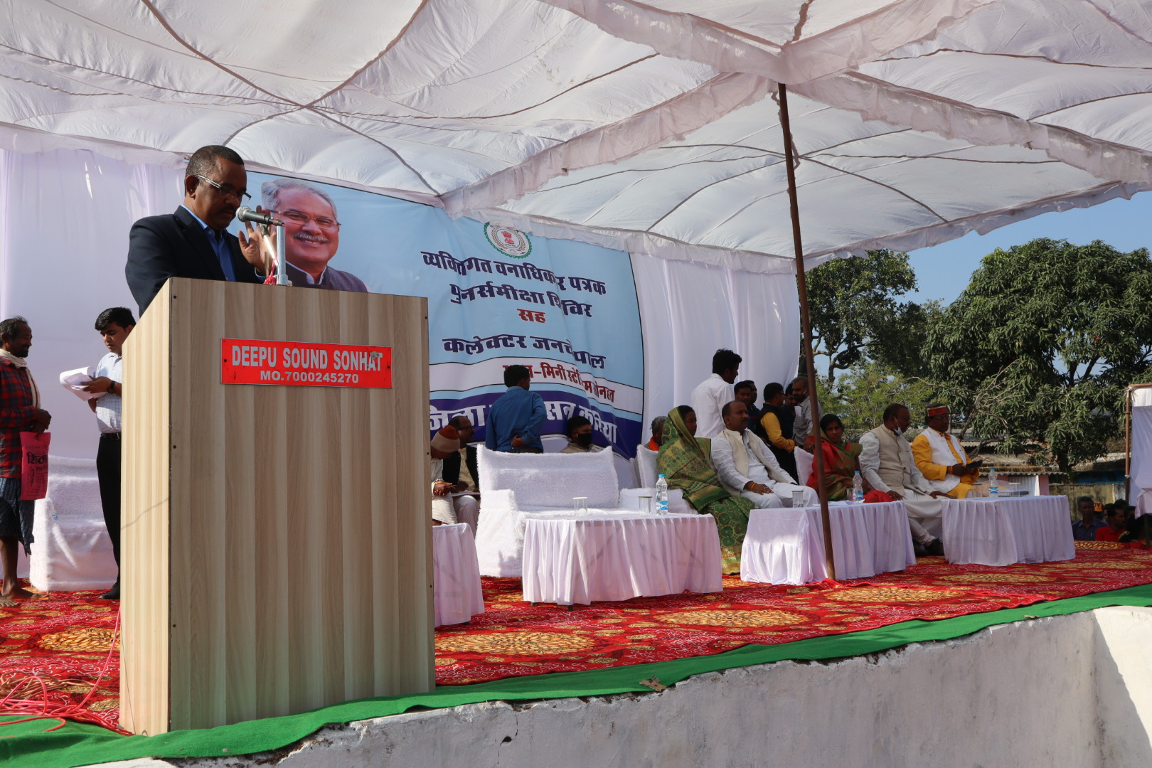 शिविर में कलेक्टर श्याम धावड़े ने मौजूद ग्रामीण जनता को वन अधिकार अधिमान्यता नियम 2006 की जानकारी दी। उन्होंने कहा कि सुप्रीम कोर्ट के निर्देश अनुसार निरस्त वनाधिकार पत्र पर पुनर्विचार कर विधिवत निराकरण किया जा रहा है। उन्होंने नियम की जानकारी देते हुए कहा कि विशेष पिछड़ी जनजातियों और परंपरागत वन निवासियों को काबिज भूमि पर उनका अधिकार दिलाने वनाधिकार पत्र का पुनर्विचार कर पट्टा जारी किया जाना है। उन्होनें राजस्व व पंचायत के जमीनी अमले को सहयोग करने कहा। उन्होनें कहा कि जनता की मदद के लिए ये षिविर आयोजित किये जा रहे है। इनका लाभ उठाए और बेहतर प्रषासन में हमारा सहयोग करें।