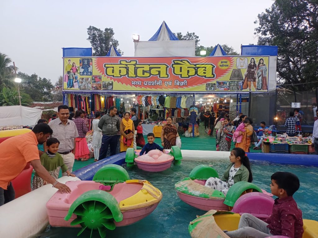 विदित हो कि बैकुंठपुर में कॉटन फैब क्राफ्ट महोत्सव 12 दिसम्बर तक किया जा रहा है। जिसमें विभिन्न राज्यो के प्रचलित मेक इन इंडिया के तहत बनने वाले उत्पादो की प्रर्दशनी लगाई गई है जिसे स्नानिय लोगो को बेहतर वैरायटी के साथ साथ बनारसी साड़ी, खादी कुर्ता शर्ट, त्रिपुर, ज्वेलरी, पिलकुव बेडशीट, कॉटन कुर्ती, पलाजो, दुप्पटा, पटियाला सूट्स, बॉम्बे जीन्स,लाख के चूड़ी, कॉटन बैग, सहारपुर फर्निचर, मुखवास, पापड़, अचार, झांसी बेडशीट, पिलकिवा बेडशीट, पर्दा, कुसन कवर, भागलपुरी ड्रेश मटेरियल, पानीपत के मोजे, जयपुरी टॉप, घरेलू उपऊगी सामग्री मनोरंजन बच्चों के लिए मिक्की माउस, जम्पिंग इस प्रदर्शनी में 20 फिसद डिस्काउंट का आफर भी रख गया है।