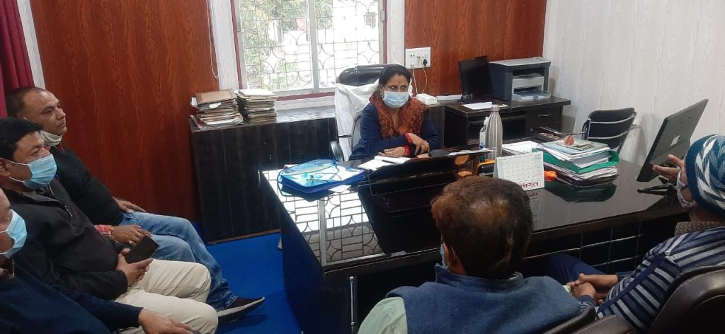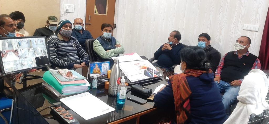 आज बैकुंठपुर नगरपालिका ऑफिस में बैकुंठपुर की मुख्य नगरपालिका अधिकारी श्रीमती मुक्ता सिंह चौहान मैडम के द्वारा बैकुंठपुर चेंबर कॉमर्स व्यापारी संघ के पदाधिकारियों की एक बैठक ली गई यह बैठक में कोरोना महामारी के रोकथाम के लिए ली गई सी एम ओ मैडम के द्वारा सभी बैकुंठपुर के व्यापारियों से निवेदन कि है वह अपने प्रतिष्ठानों में सोशल डिस्टेंसिंग का पालन करवाएं सैनिटाइजर का उपयोग करवाएं एवं मास्क के लिए हर व्यक्ति को प्रेरित करें क्योंकि आने वाले दिनों में हो सकता है कि कोरोना वायरस अपने चरम सीमा में पहुंचे इसी के लिए सतर्कता बरतने के लिए उन्होंने अपील की है 2 दिन मुनादी करवाने के बाद बिना मास्क पहने घूम रहे लोगों को चालान काटने की कार्रवाई की जाएगी