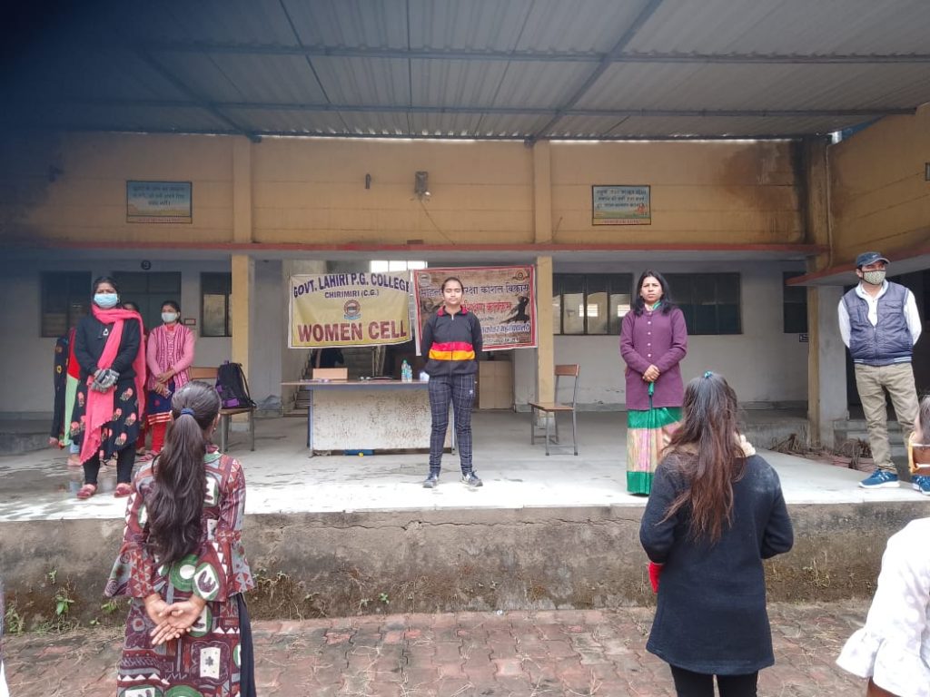 शासकीय लाहिड़ी पीजी कॉलेज चिरमिरी के महिला प्रकोष्ठ के तत्वाधान में जयंती एवं युवा सप्ताह के अंतर्गत महाविद्यालय में तीन दिवसीय निः शुल्क बालिका आत्मरक्षा कौशल कराटे प्रशिक्षण शिविर का आयोजन किया जा रहा है। महाविद्यालय की प्राचार्य डॉ आरती तिवारी ने कार्यक्रम का उद्घाटन करते हुए अपने संबोधन में कहा की आज के समय में महिलाओं और बच्चियों का मानसिक रूप से स्वस्थ और मजबूत होना बेहद आवश्यक है महाविद्यालय की महिला अधिकारियों, शिक्षिकाओं, कर्मचारियों एवं छात्राओं की सुरक्षा को ध्यान में रखते हुए महिला प्रकोष्ठ के द्वारा समय-समय पर आत्मरक्षा कौशल के कार्यक्रम कराए जाते हैं । महिला प्रकोष्ठ की संयोजक डॉ आराधना गोस्वामी ने कहा की यह प्रशिक्षण महिलाओं और बालिकाओं के मनोबल को ऊंचा करेगा लोगों के मन से यह भ्रांति को हटाना जरूरी है कि महिलाएं अबला लाचार एवं कमजोर होती हैं। आत्मरक्षा एक कौशल है जो प्रत्येक नारी के लिए अनिवार्य है तीन दिवसीय यह प्रशिक्षण पूर्ण रूप से निशुल्क है। प्रशिक्षण के दौरान सोशल डिस्टेंसिंग एवं मास्क का उपयोग अनिवार्य रूप से किया जा रहा है। महाविद्यालय में प्रशिक्षण जिला कराटे संघ मनेंद्रगढ़ से श्री दीपक चौहान एवं वर्षा तिवारी के नेतृत्व में दिया जा रहा है। कार्यक्रम में महाविद्यालय के आइक्यूएसी प्रभारी श्री सुभाष चंद्र चतुर्वेदी, रेड क्रॉस प्रभारी श्री विजय कुमार लहरें ,अतिथि व्याख्याता मोहिनी, रिचा, रश्मिता आयुषी राय, अंकिता, मंजू एवं प्रियंवादा शुक्ला उपस्थित रहे महिला प्रकोष्ठ की स्वयंसेवक इशिता केशरवानी, पीयाली चटर्जी, हसरातून निशा एवं श्रेया मिश्रा ने अपना सहयोग प्रदान किया ।।