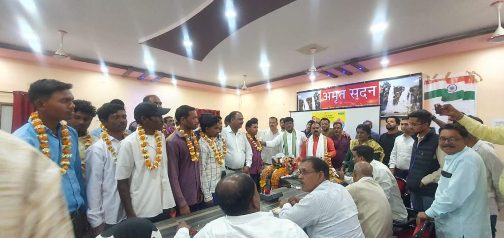 कोरिया/ मनेंद्रगढ़ । मनेंद्रगढ़ विधानसभा क्षेत्र के विधायक डॉ विनय जायसवाल को छत्तीसगढ़ शासन द्वारा राज्य मंत्री का दर्जा प्राप्त होने के बाद अपने विधानसभा क्षेत्र में प्रथम आगमन पर में समस्थ कांग्रेस पार्टी के पदाधिकारियों, कार्यकर्ताओं व क्षेत्र की जनता ने शहर के चौक चौराहों पर फूल मालाओं से साथ भव्य आतिशबाजी कर मुंह मीठा करते हुए उनका आत्मीय स्वागत किया । स्वागत आयोजन में महिला कांग्रेस की पदाधिकारियों ने विधायक की आरती उतार , तिलक लगाकर कर बधाई एवं अपनी शुभकामनाएं दी । स्वागत कार्यक्रम में विशेष रूप से छत्तीसगढ़ शालेय शिक्षक संघ संघ के पदाधिकारी व सदस्यों के साथ चेंबर ऑफ कॉमर्स मनेंद्रगढ़ के पदाधिकारीयों, स्थानीय व्यापारी संगठन, मनेंद्रगढ़ के समस्त पार्षद व एल्डर मैन, नगर पंचायत झगड़ाखाण्ड के समस्त निर्वाचित पार्षद, मनोनीत पार्षद, स्थानीय सिख समाज ,जैन समाज, मुस्लिम समाज, सिंधी समाज, स्वर्णकार समाज, बोहरा समाज, बंग समाज एवं मनेंद्रगढ़ के स्थानीय निर्वाचित प्रतिनिधि वार्ड नंबर 9 के पार्षद प्रतिनीति श्री गंभीर सिंह ने अपने साथियों के साथ माला पहनाकर विधायक मनेंद्रगढ़ को बधाई व अपनी शुभकामनाएं दी । इसी तारतम्य में जिला कांग्रेस, समस्त महिला कांग्रेस, युवक कांग्रेस एवं एनएसयूआई के पदाधिकारीयों ने भी विधायक मनेंद्रगढ़ का गर्मजोशी से स्वागत किया और उन्हें बधाई दी । इस स्वागत आयोजन में मनेंद्रगढ़ विधानसभा के ग्रामीण अंचल के ग्राम पाराड़ोल के सरपंच अभिराज सिंह के नेतृत्व में भारी संख्या में ग्रामीणजनो ने भारतीय जनता पार्टी की सदस्यता छोड़ कांग्रेस पार्टी में सामिल हुए सभी ग्रामीणों को राज्यमंत्री डॉ विनय जायसवाल को फूल माला पहनाकर उनका स्वागत कर कांग्रेस पार्टी का सिपाही होने की बात कही । मौके पर उपस्थित मुन्ना लाल सरपंच नारायणपुर, परमेश्वर सिंह, शिव चरण सिंह, संजय सिंह, विजय सिंह, महेंद्र सिंह, सोहन सिंह, कल्याण सिंह, सूर्य नारायण सिंह अजमेर सिंह छिपछिपी, राम प्रताप सिंह ने सदस्यता ग्रहण कर विधायक के मार्ग दर्शन में कार्य करने की बात कही । अपने स्वागत कार्यक्रम के दौरान राज्य मंत्री दर्जा प्राप्त मनेंद्रगढ़ विधायक डॉ विनय जायसवाल ने अपने उद्बोधन में कहा कि उम्मीद से कहीं ज्यादा मेरा स्वागत अभिनंदन जनता के द्वारा किया गया। मैं मनेंद्रगढ़ विधानसभा के विकास के लिए कोई कोर कसर नहीं छोडूंगा । मनेंद्रगढ़ विधानसभा क्षेत्र निरंतर विकास की गति में आगे बढ़ता रहेगा ऐसा उनका पूरा प्रयास रहेगा। उन्होंने अपने स्वागत व अभिनंदन के लिए मनेंद्रगढ़ विधानसभा क्षेत्र की जनता के प्रति आभार प्रकट किया एवं धन्यवाद ज्ञापित किया ।
