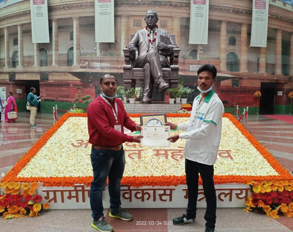 “प्रोजेक्ट उन्नति” के बारे में जानकारी देते हुए जिला पंचायत के मुख्यकार्यपालन अधिकारी कुणाल दुदावत ने बताया कि केन्द्रीय ग्रामीण विकास मंत्रालय के मनरेगा डिवीजन द्वारा शुरू किया गया एक महत्वाकांक्षी कार्यक्रम है, जो राष्ट्रीय ग्रामीण आजीविका मिशन और मनरेगा के परस्पर समन्वय से संचालित किया जा रहा है। इस कार्यक्रम का उद्देश्य मनरेगा के अन्तर्गत कार्य कर रहे ग्रामीण परिवारों के सदस्यों को उनकी रूचि के आधार पर प्रशिक्षण देकर उन्हें रोजगार एवं स्वरोजगार के काबिल बनाना है। इसके तहत वित्तीय वर्ष 2018-19 में 100 दिनों का रोजगार हासिल करने वाले परिवार के किसी एक सदस्य को जिनकी आयु 18 से 45 वर्ष के बीच है, स्वरोजगार के लिए प्रशिक्षण मुहैया कराया जाता है। विदित हो कि कोरिया जिले के मनरेगा श्रमिक श्री कृष्ण कुमार के अलावा प्रदेश के जिन 5 श्रमिकों को सम्मान मिला है उनमें प्रोजेक्ट ‘उन्नति’ के अंतर्गत प्रशिक्षण हासिल करने के बाद मशरूम उत्पादन का स्वरोजगार करने वाली धमतरी जिले के धमतरी विकासखण्ड की भनपुरी ग्राम पंचायत की नीतू बाई साहू तथा मोमबत्ती बनाने का काम शुरू करने वाली सारंगपुरी पंचायत की फूलवती कंवर, कौशल उन्नयन के बाद सिलाई का काम कर रही गरियाबंद जिले के फिंगेश्वर विकासखंड की लोहरसी की गीतांजली ध्रुव और पतोरा पंचायत की ओमेश्वरी कंवर एवं मोबाइल रिपेयरिंग का काम कर रहे महासमुंद जिले के बसना विकासखण्ड के दुर्गापाली के बिमल साव भी नई दिल्ली में सम्मानित किए गए हैं।