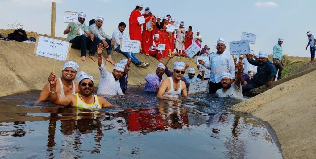 अपनी माँगो के लिए मनरेगाकर्मियों ने किया जल सत्याग्रह……